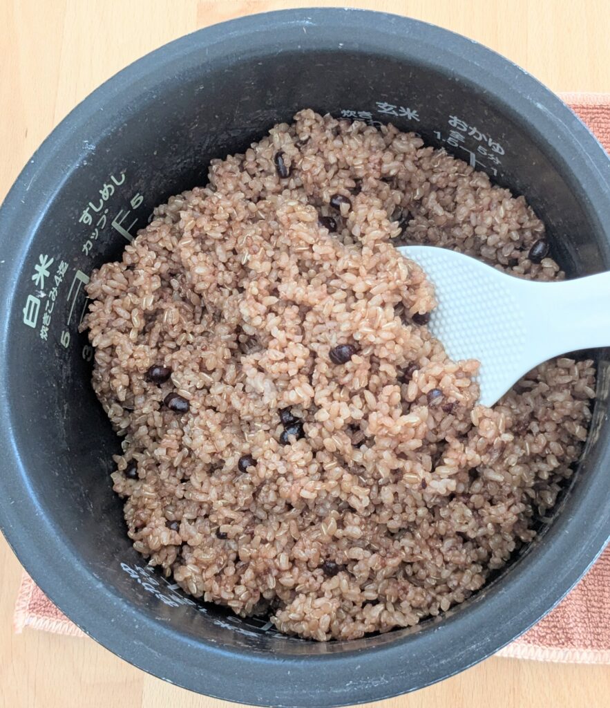炊きたての玄米はパサつきがちですが、保温しながら3日ほど寝かせると、