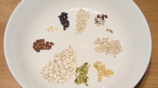 代表的な穀物は、もち麦・黒米・赤米・押し麦・大豆・キビ・アマランサスなど。