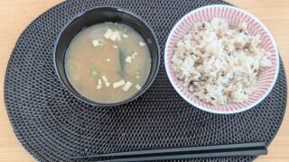 発酵雑穀ごはんの上にみそ汁を注ぎ、刻みねぎや海苔をトッピング。